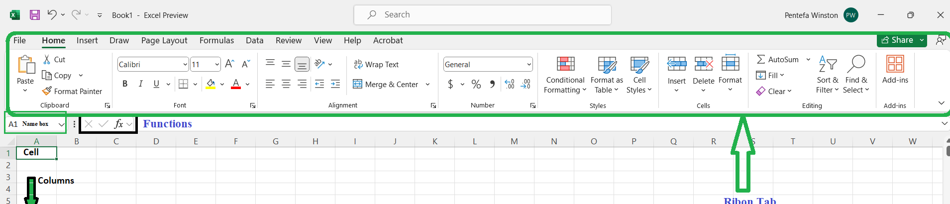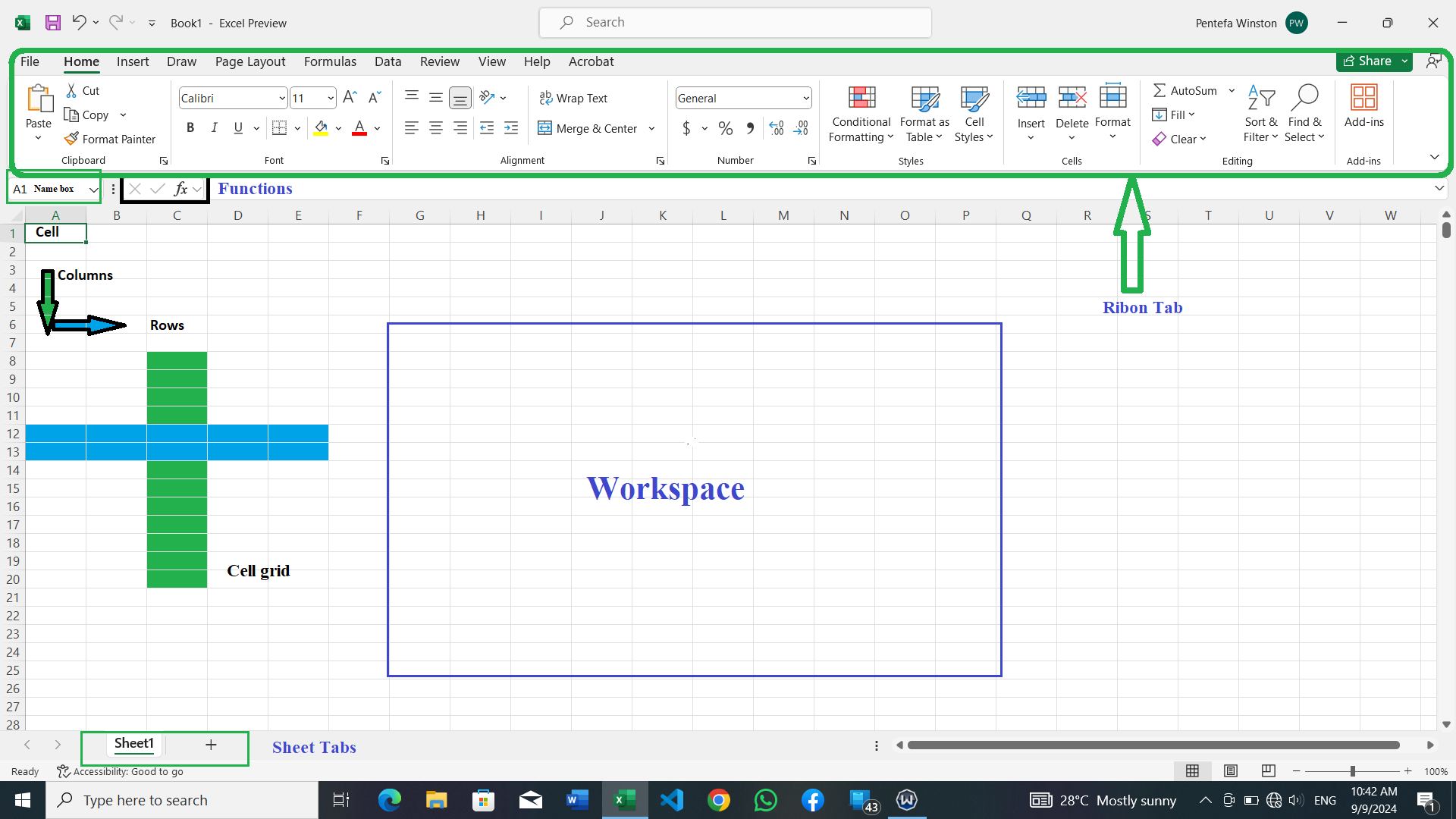 Rows and Columns: Crucial for Organizing cells horizontally and vertically. This constitute the entire workspace of a spreadsheet.