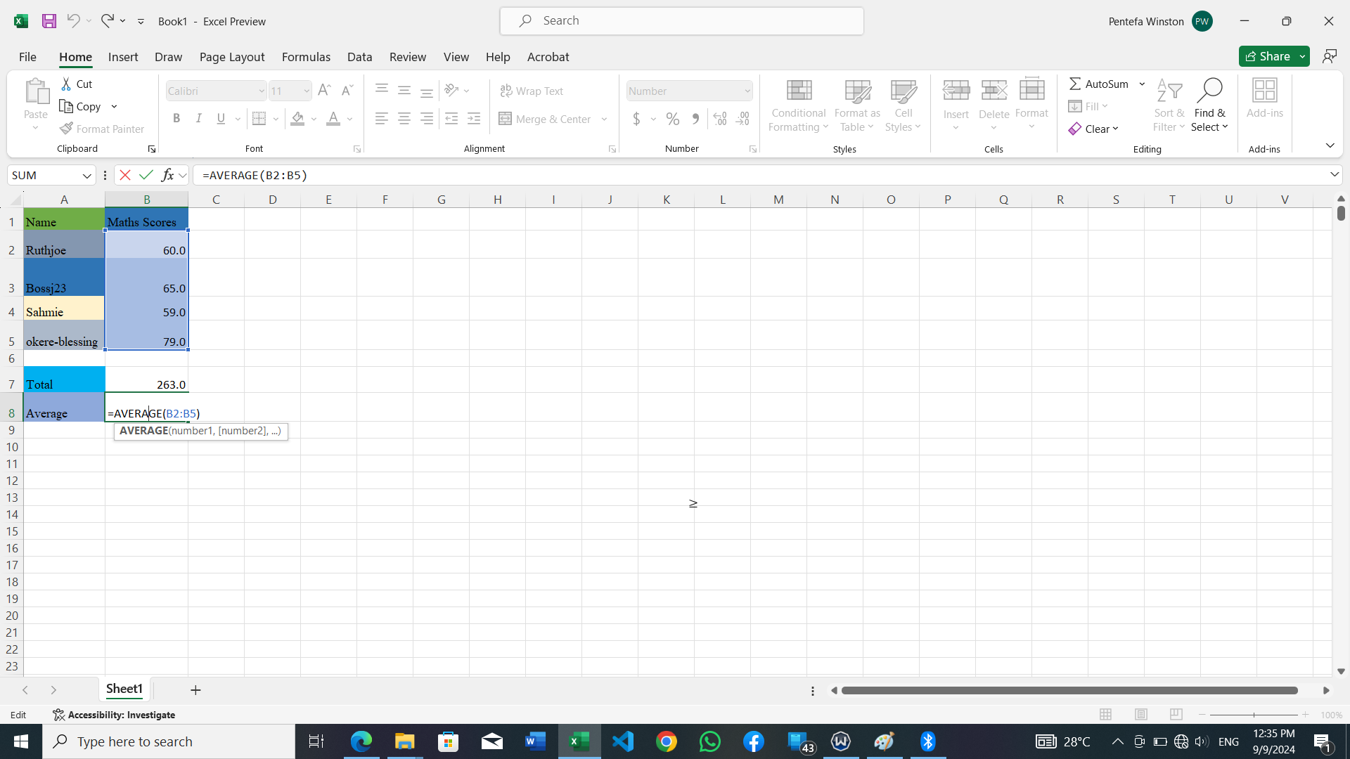 Next step, I proceed to add the section for the sum and average. While applying some colors to make my work beautiful.