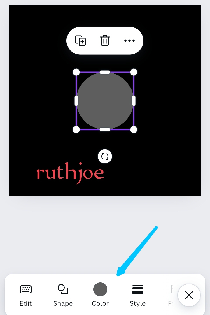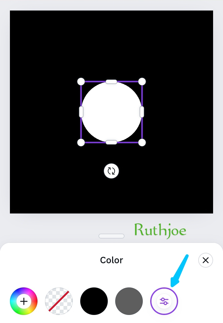 Step 5: after clicking on the circle shape, it reflects on my square image so I highlight it as seen on the screenshot at the left. I go further to make the circle shape brighter with colour white by clicking on colour below as seen on the middle screenshot. Then colour white refects on the circle as seen on the screenshot at the right below.