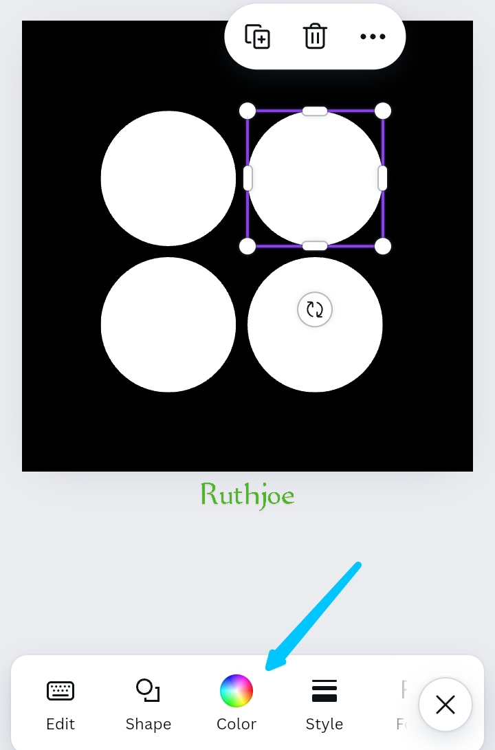 Step 6: I highlight the circle again and I click on the icon bearing the + sign to make duplicate of the circle. I click it 4 times which makes 4 white circles. As seen on the screenshot below, I went further to arrange the 4 circles well.