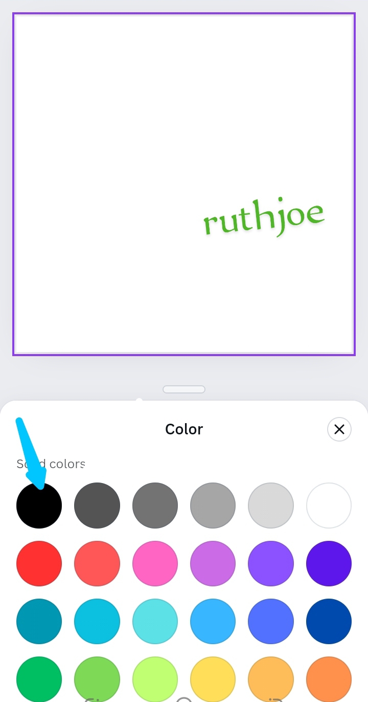 Step 3 : After selecting the size , what appears is a white blank interface as seen in screenshot 1. What I did next was to click on the white square. When I click on it, the white square is highlighted, what appears next is the instruction underneath as seen in the screenshot 2, I went ahead to click on colour then selected the colour black as seen in screenshot 3 below.