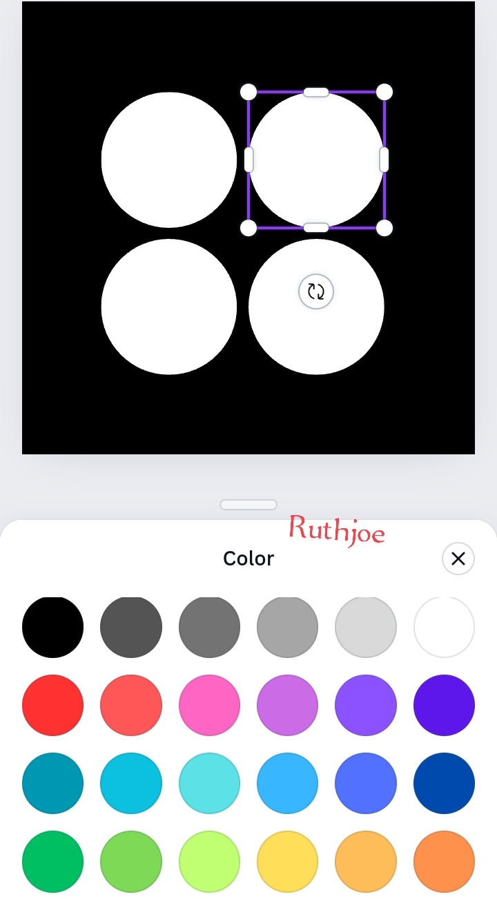 Step 6: After arranging the circles. I click on one of the circles, highlighting it, then click on colour at the tool bar. I searched for the colour yellow and I selected the colour yellow to differentiate that particular shape from others. Immediately the yellow colour reflects on the circle highlighted.