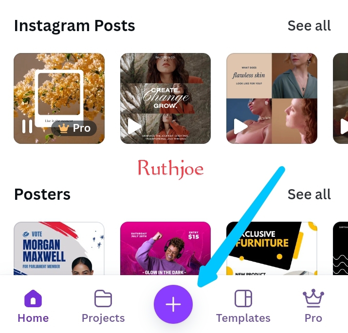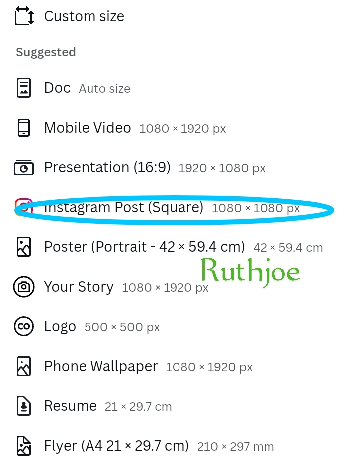 Step 2: As soon as it opens, I select my desired size which is Instagram post square 1080 x 1080 px as you can see from the right screenshot above.