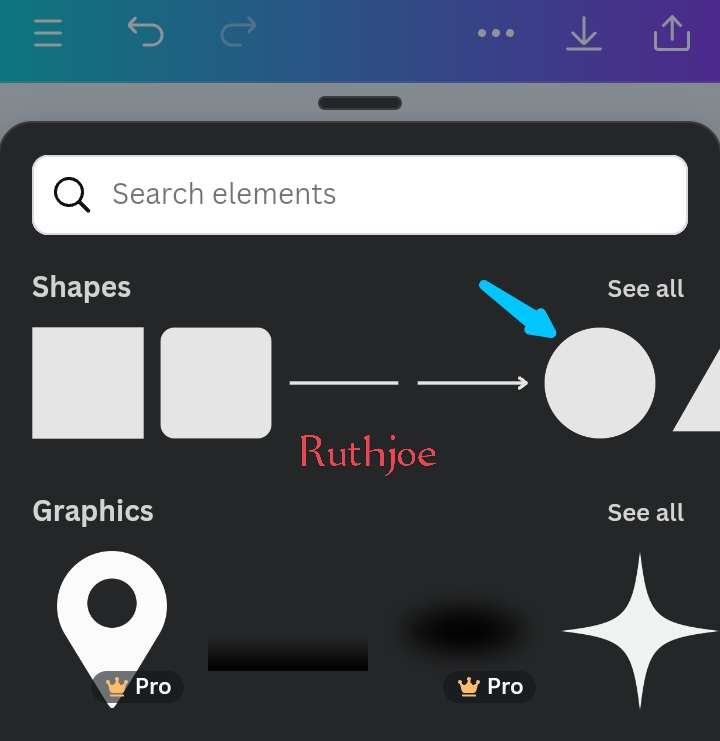 Step 4: when I select the colour black, I click on it , then the black colour refects on the square changing from white to black. As seen on the left screenshot before. After that, I selected element as seen at the middle screenshot. When it opens up I selected the white circle shape as seen at the right screenshot.