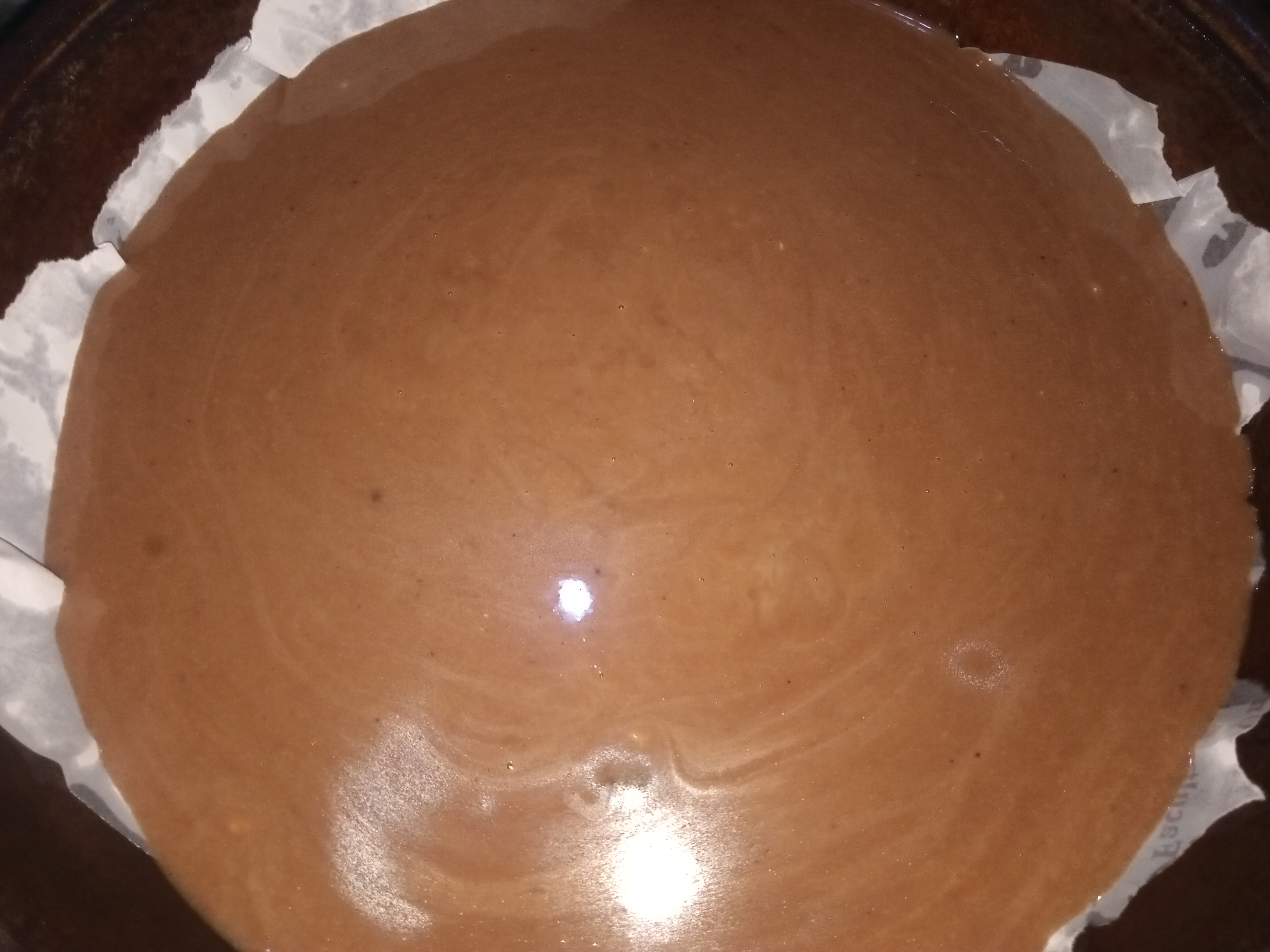 You can add little hot milk if mixture is thick.Grease pan with oil and butter paper and pour prepared batter in it.