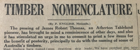 Special thanks to the Eacham Historical Society, and Reg Starkey - this clipping was part of the Glenville Pike collection of papers. (I was unable to obtain a date for the article; Patrick English was secretary of the Malanda Show Society in 1948).