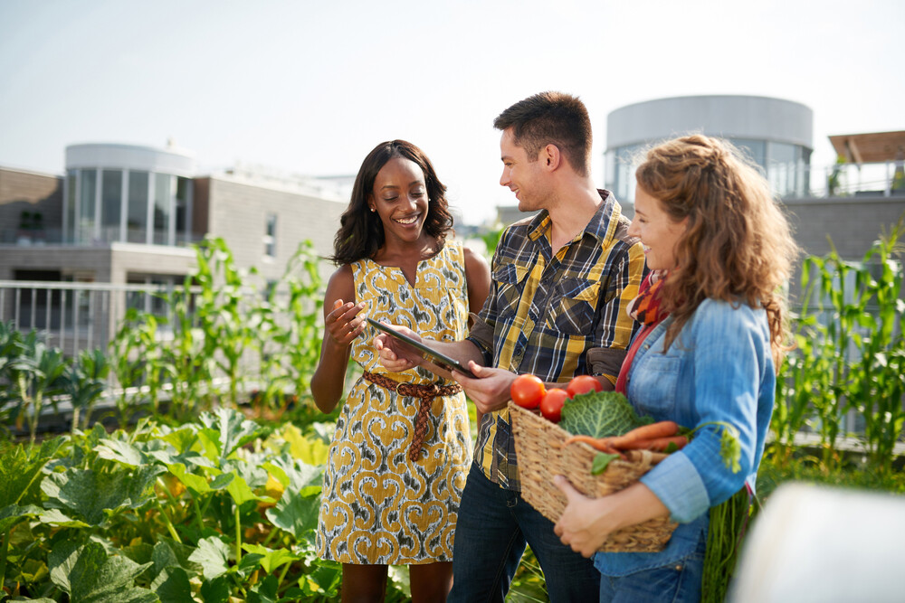 This could be a small garden outdoors, a container garden on the rooftop, or a large community garden.