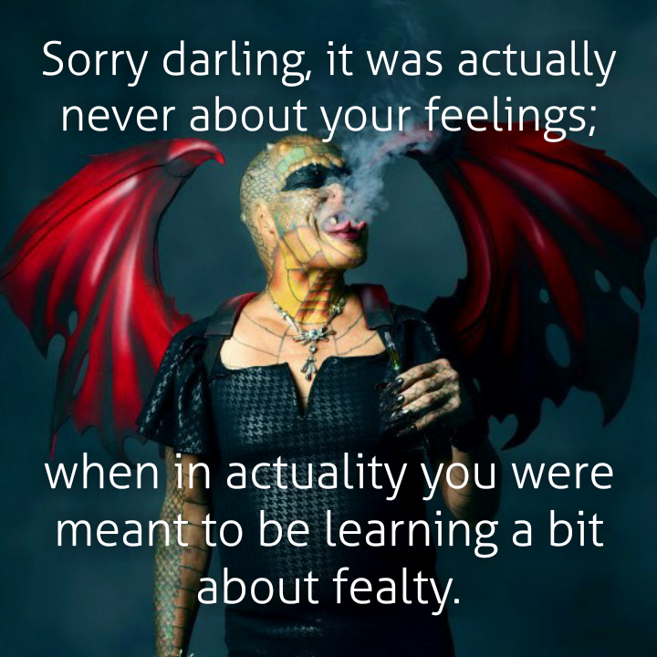 Sorry Darlinghermetichermit (44)in #business • 6 years ago Sorry darling, it was actually never about your feelings; when in actuality you were meant to be learning a bit about fealty. ♃ ♄ #politics #religion #government #science