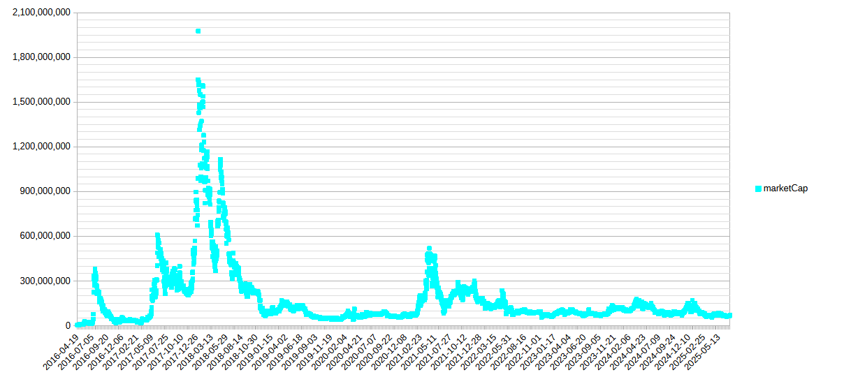 Update (July 11): This reply from @pennsif made me curious. Here's a graph of Steem's historical market cap. Looks to me like Steem has been in the micro cap range for most of its history, but it has transitioned (briefly) all the way from nano cap to mid cap. (historical data from @officialcmc)