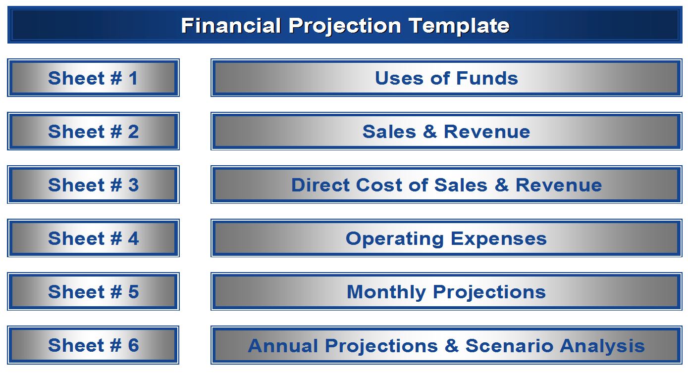 The Financial Projection Template that is used in developing your Feasibility Study is an Excel model that has six spreadsheets. It’s color coded and has proven to be a tool that even the most mathematically challenged people are able to master once it has been explained.