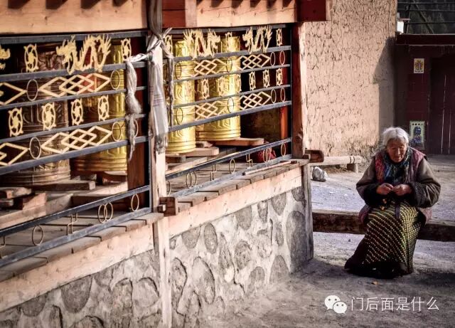 匆匆吃过晚饭,天还没有完全黑下来。我和老婆决定爬到村顶的白塔。 村子里年迈的阿乙(藏族老奶奶的意思)日复一日年复一年地转经轮、转佛珠,为家人积福。