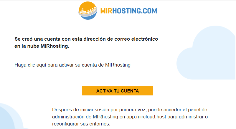 Ultimo correo electrónico para poder comenzar a usar los servicios cloud computing