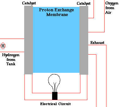 In a conventional power plant, fuel and air enter the power plant and products of combustion leave the unit. There is also a transfer of heat to the cooling water and work is done in the form of electrical energy. The fuel cell accomplishes this objective by converting the chemical energy of a fuel directly to electricity. A schematic arrangement of a fuel cell of ion-exchange membrane type. In this fuel cell, Hydrogen (H) and Oxygen (O2) react to form Water(H2O). The flow of electrons in the external circuit is from anode and cathode.