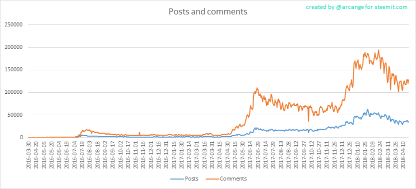 For many, statistics are boring. However, in the context of comparing the two platforms, they are indispensable for analyzing the situation. Of course, the figures can not tell the story of what is happening on their own, but strong deviations will show the points of change in the situation. So, all data will go in the following order-first Steemit, second Golos.