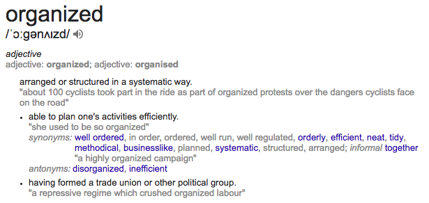 Read: organised means structured.