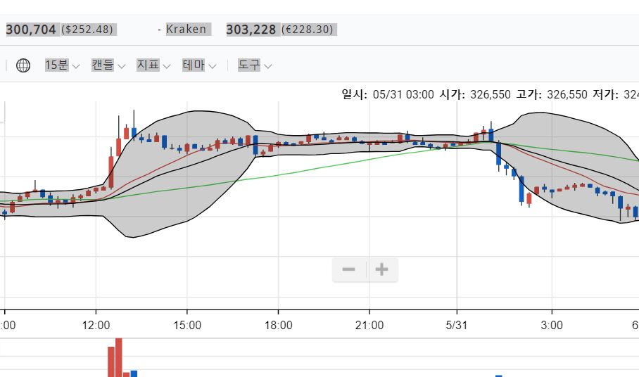 15분 봉 차트를 보는 데... 묘한 그림이 드러난다. 사진에서 보는 모습이다.