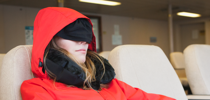 잠시 휴식이 필요하거나 잠이 올 때는 후드 안에 내장된 여행용 아이 마스크를 이용하면 됩니다.
