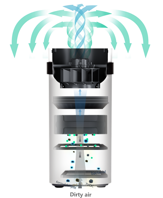 초 저소음 및 고급 여과 경험을 제공합니다. (60db 이하로 0.0146 미크론 크기의 미세 입자를 제거합니다)
