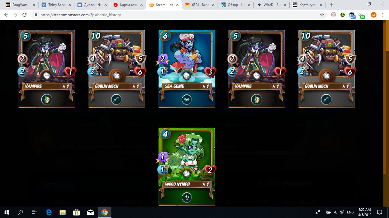 Привет стимиане! Сегодня уже мой девяносто третий день в игре https://steemmonsters.com?ref=maxer