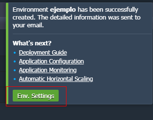 Here you can see the result of a newly created environment. Based on NodeJs technology.