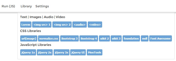 In the desktop version, there is a display control in the upper right-hand corner of which 3-oclock icon will be divided into 3 sections and the JS Editor will not be available. Clicking on the icon in the 4 cell icon will come to it. The Live Preview box will change its size by clicking on the monitors, tabs, and mobile icons on the far left.