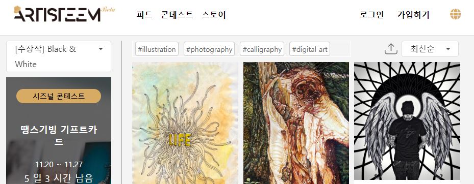 예술적 창작물을 올리는데 특화된 서비스입니다. 오픈초기에는 주제에 맞는 사진이나 그림을 올리기만 하면 기본보팅을 해 주었는데 최근에는 어떤지 모르겠네요. 매주 주제가 달라지며 우수작으로 선발되면 별도의 보팅을 받을 수 있습니다.