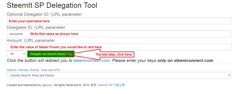 To rent your Steem Power quantity, click on the link Leasing You will see the Steem Power Delegation Tool page