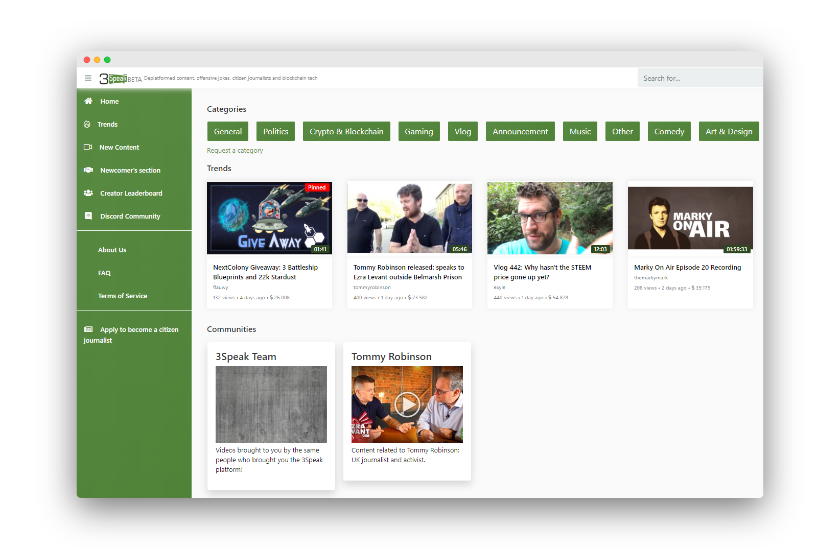 3Speak went ahead and started adding this feature to its platform. With the communities feature, one simply clicks on the preferred one and all videos pertaining to that individual or topic will be show. Presently, according to their announcement, there are two that were set up.