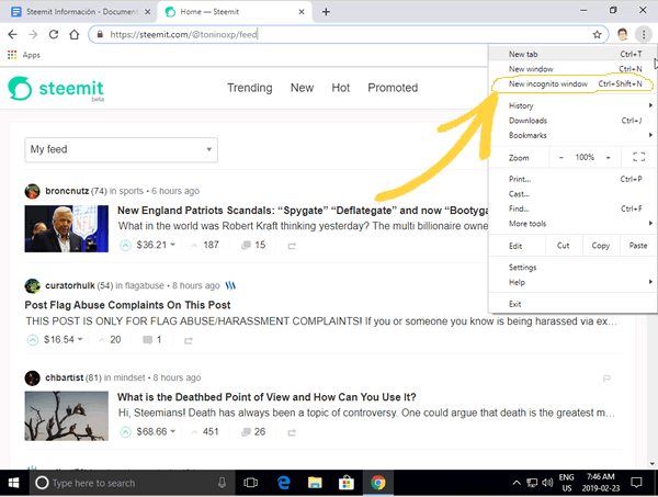 To open a private or incognito window in Google Chrome, click on the icon in the top far right, an icon which shows three dots on top of each other. Then click on the “Open Private Window Browser” See image below: