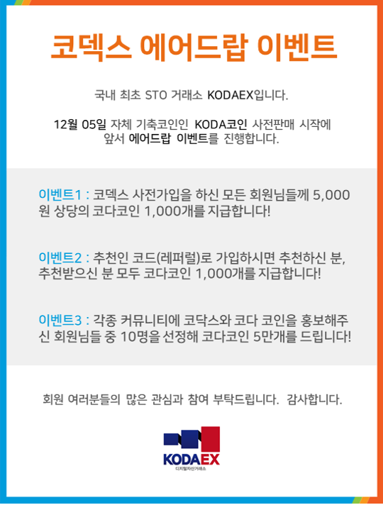 그럼 그 외에도 KODAEX 거래소 사전가입 이벤트에 대해서 자세히 알아보도록 하겠습니다.