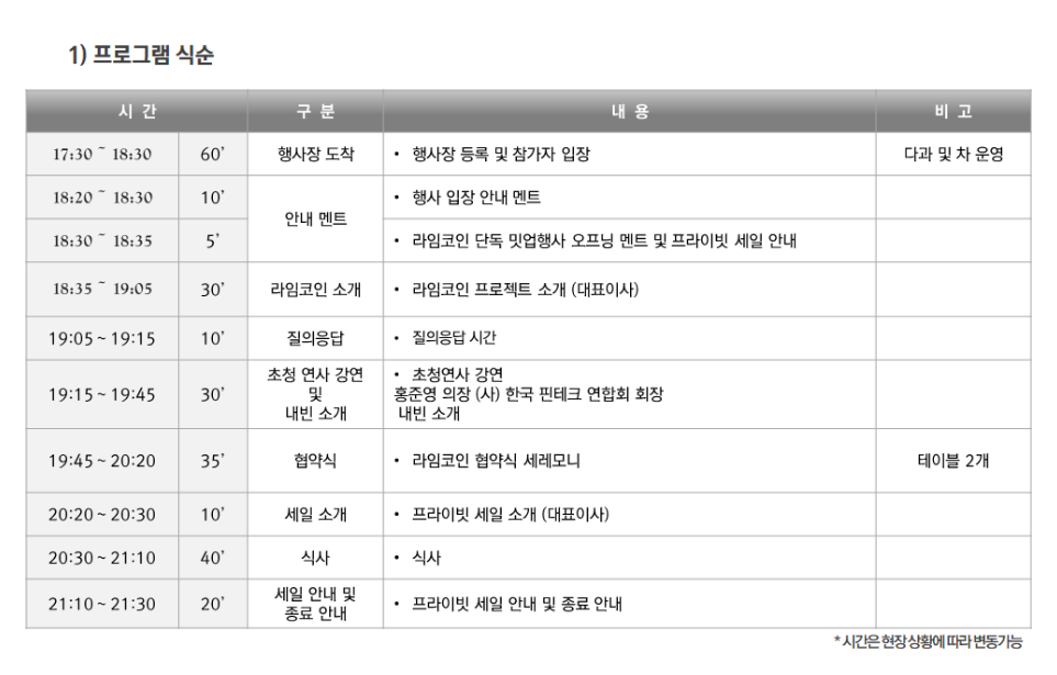 행사는 라임코인 소개와 VIP 초청 연설, 그리고 협약식,