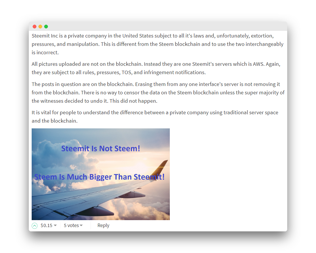 Steemit Inc is a private company in the United States subject to all it's laws and, unfortunately, extortion, pressures, and manipulation. This is different from the Steem blockchain and to use the two interchangeably is incorrect.