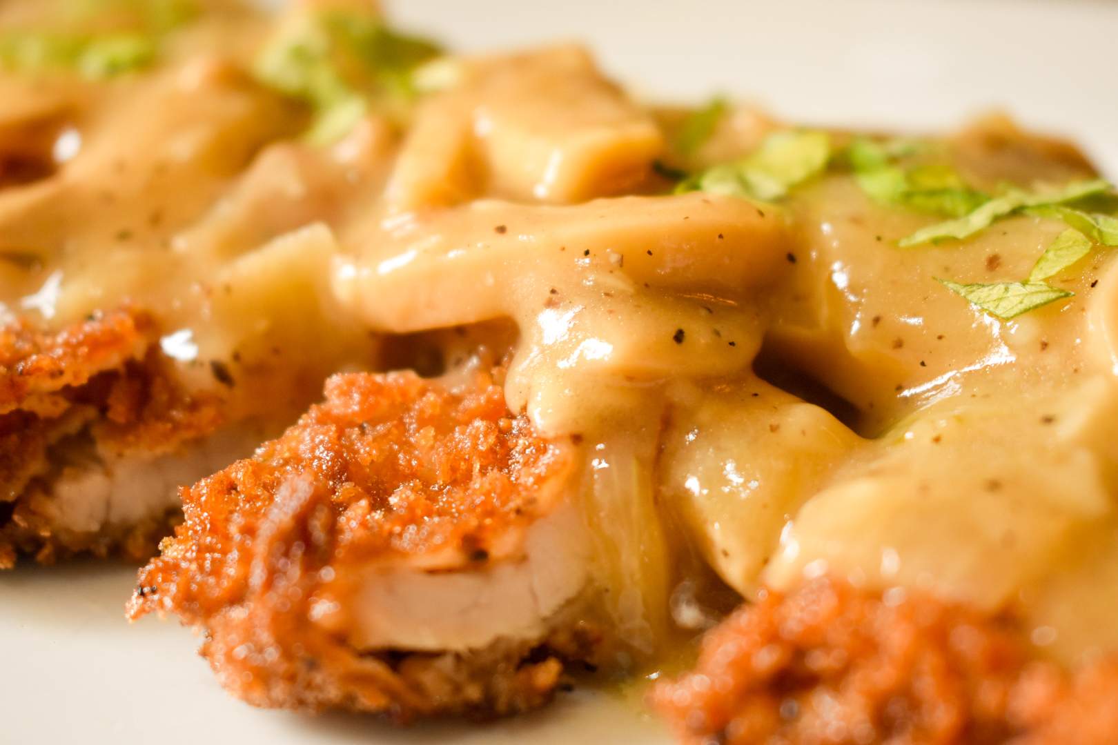 - Once sauce gets thick, remove from the heat and serve on top of the pork cutlet.