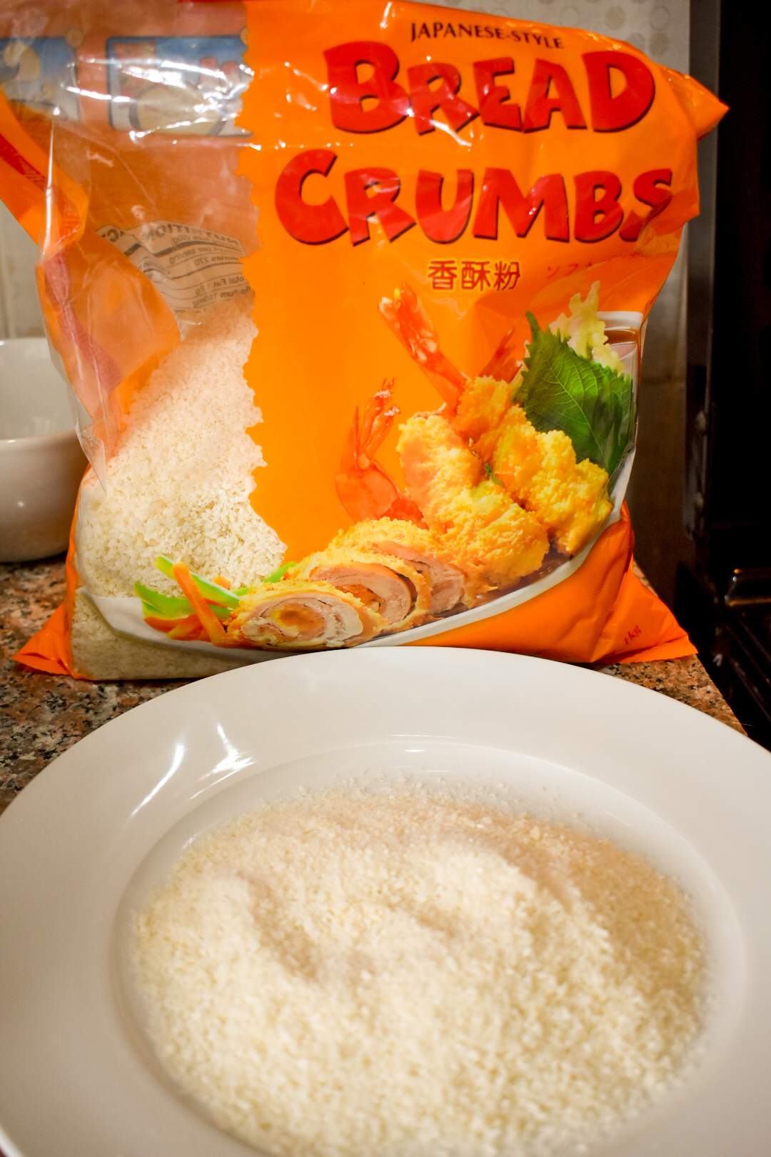 Since I only have regular breadcrumbs, I coarse grind it to using my coffee maker (though I could have used my food processor but the coffee maker is easier to clean and it doesn't take as much space on my counter, haha).