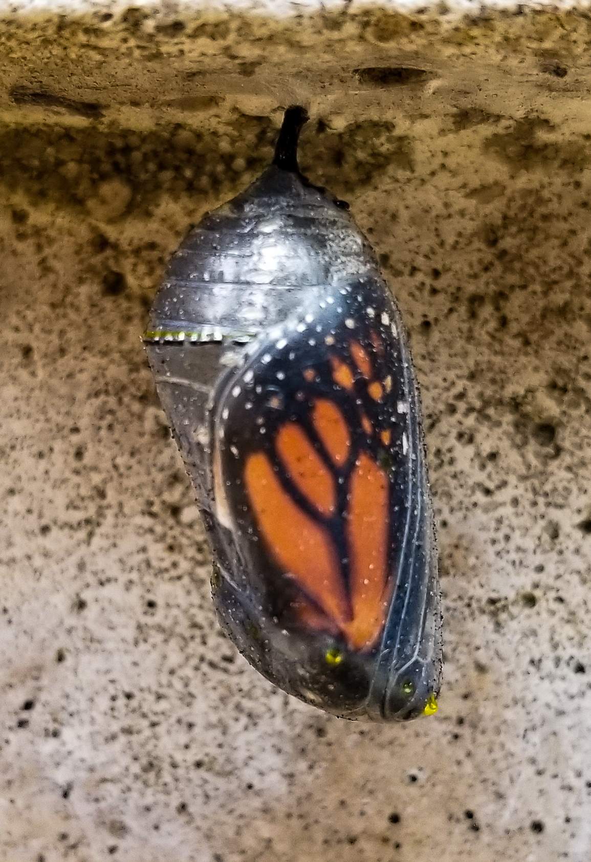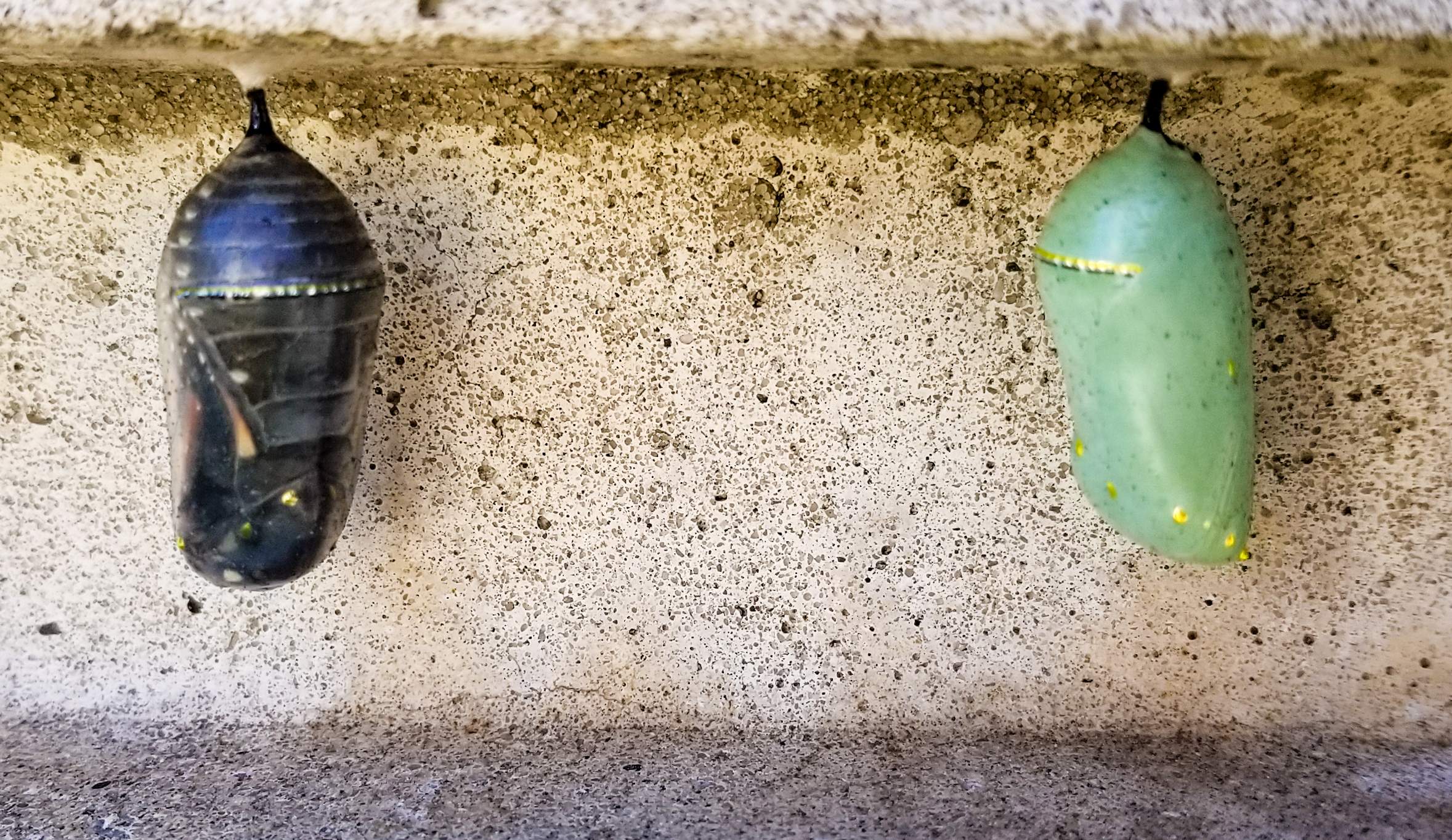Here's a comparison of a fresh chrysalis and one that is about to hatch.