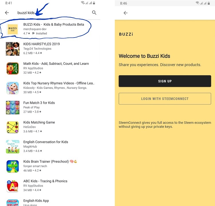 On your Android smartphone, open the PlayStore app and search for "BUZZi Kids" without quotes.