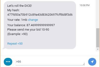 In the meantime, your attention we present our second project - the game “DICE” on the Byteball platform. Your task is to choose the number from 10 to 90 and the direction of the prediction (more/less). You will win if the number roll within the predicted range. The maximum available multiplier is 10x. And we are happy to announce the opening of this project!