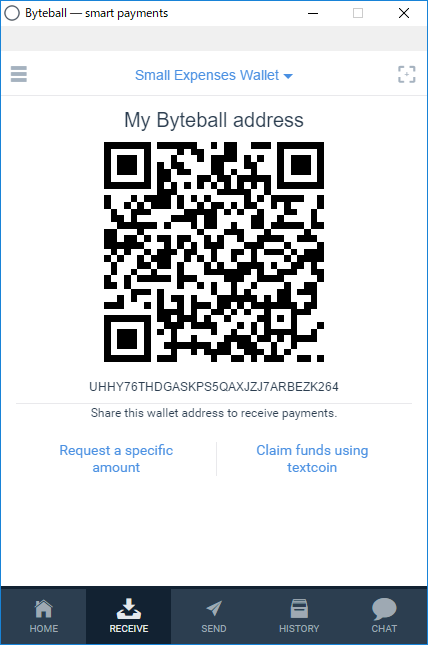 - Klik Receive dan copy alamat Byteball anda.