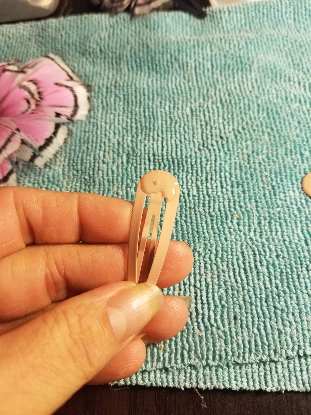 Once your done with the last layer get your e6000 and glue the hair clip to the back.