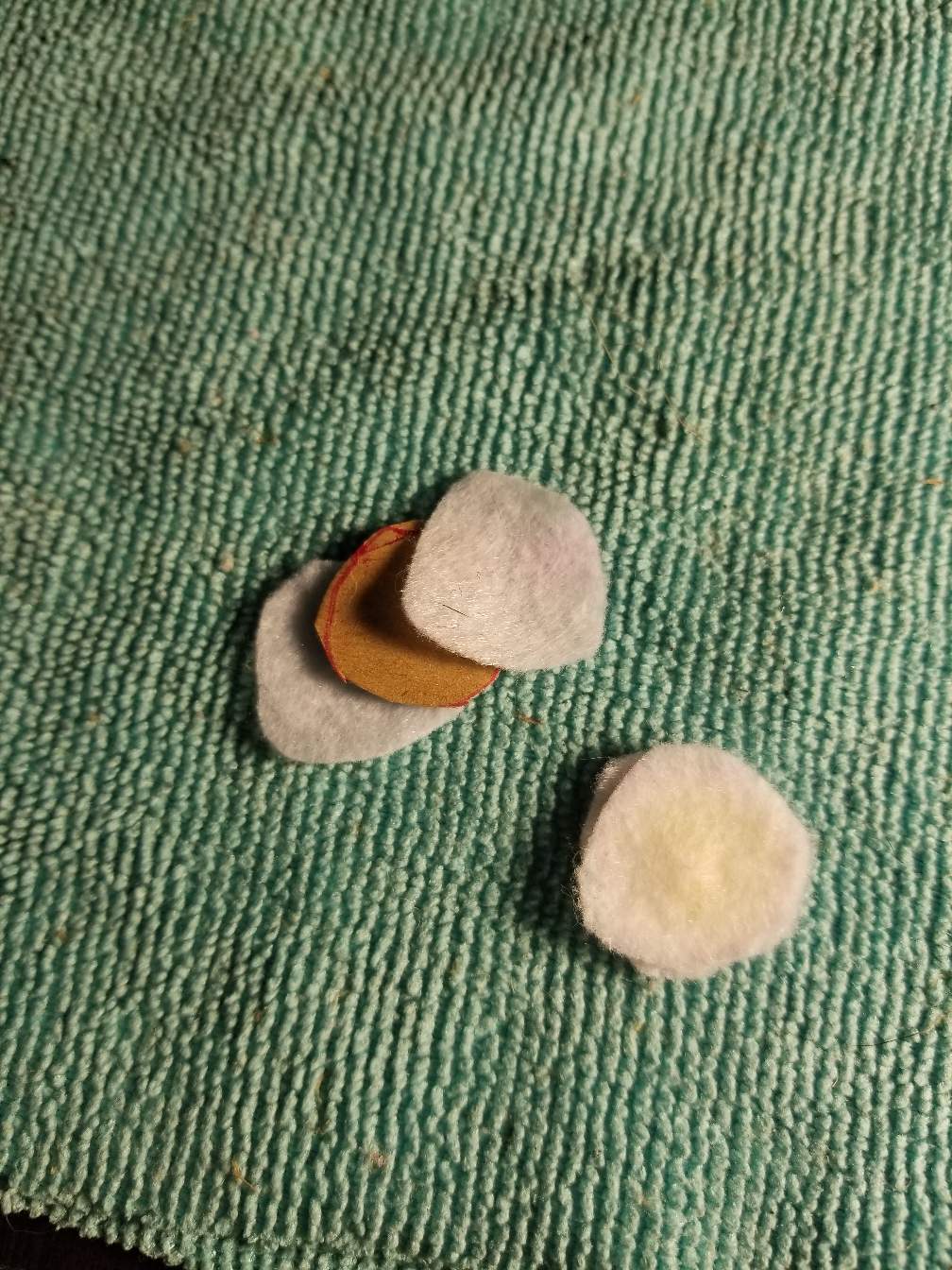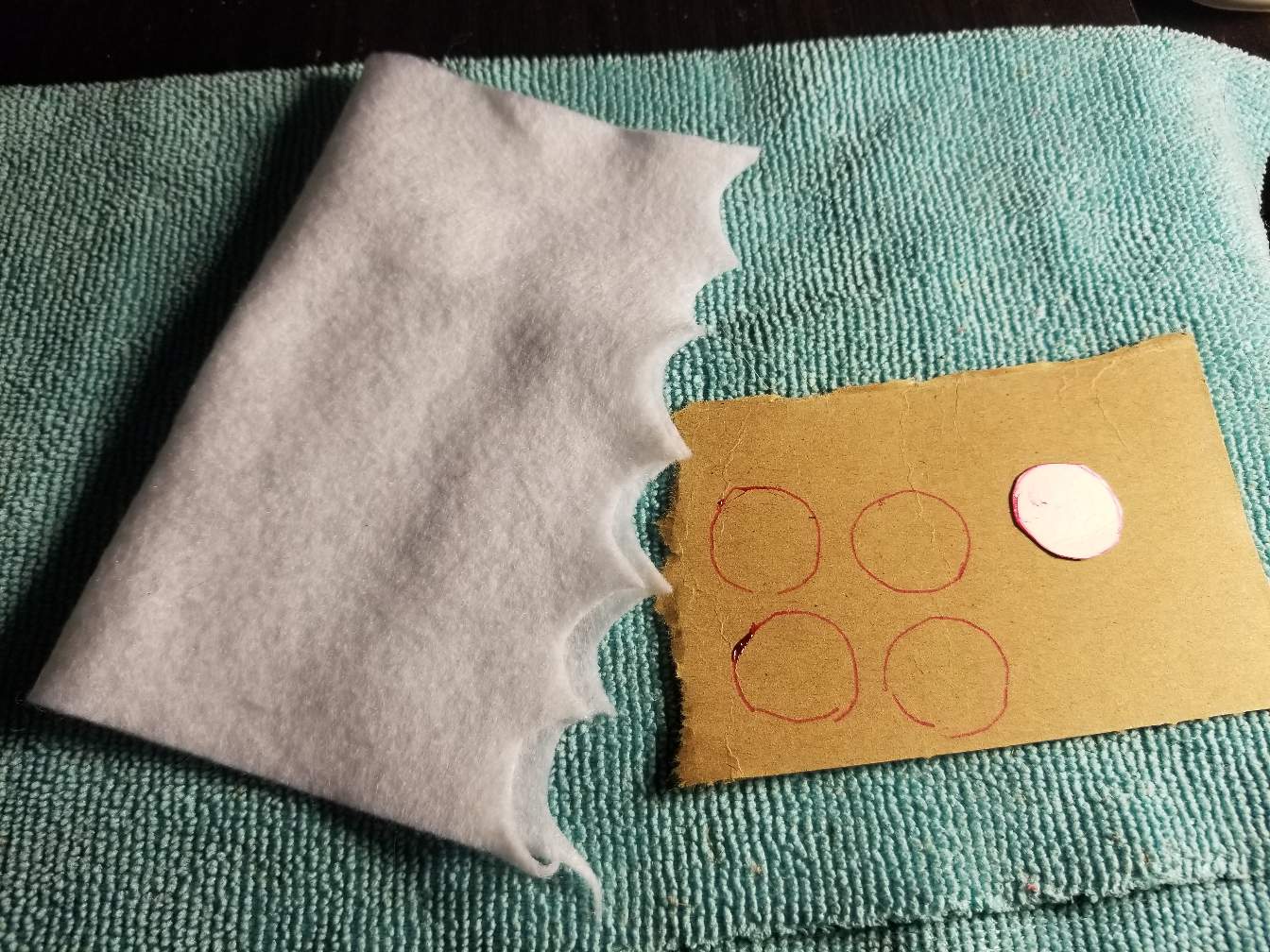 Draw some circles on the cardboard about the size of a nickel , and the felt you will want just a bit bigger then your cardboard circle. Make sure you have two pieces of the felt cut out.