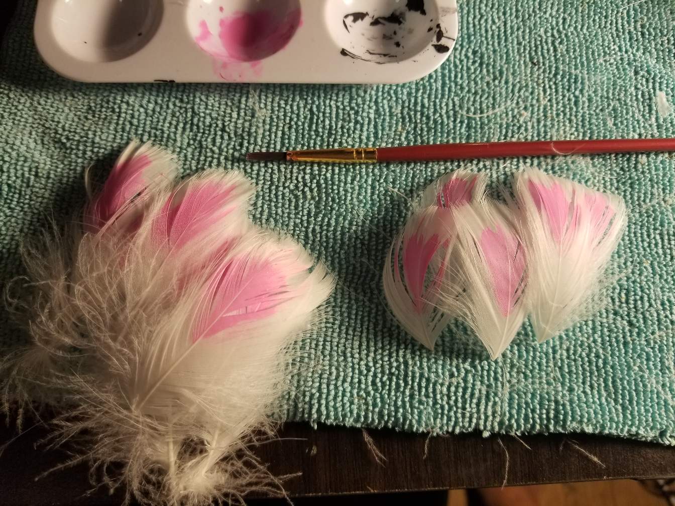 So next is the #fun part 🤗. #painting so water down your paint a little and brush on a light thin coat in the center of the feather.