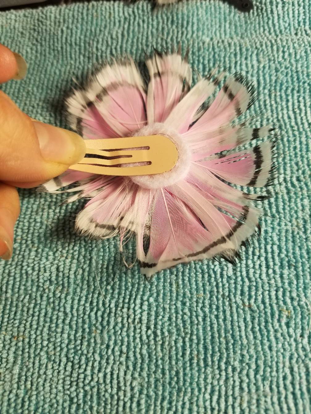 DIY feather flower hair clips