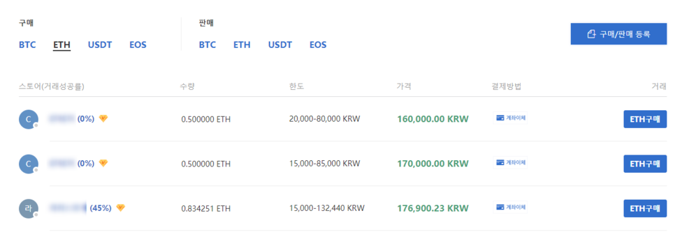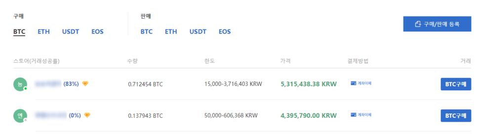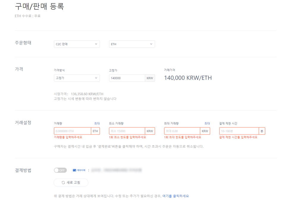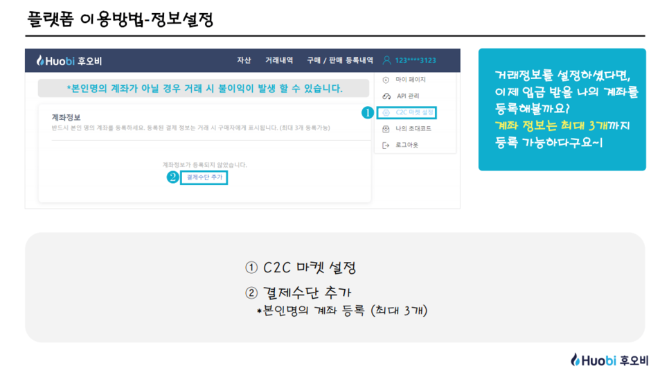 후오비코리아 C2C마켓은 개인간의 직거래마켓이지만