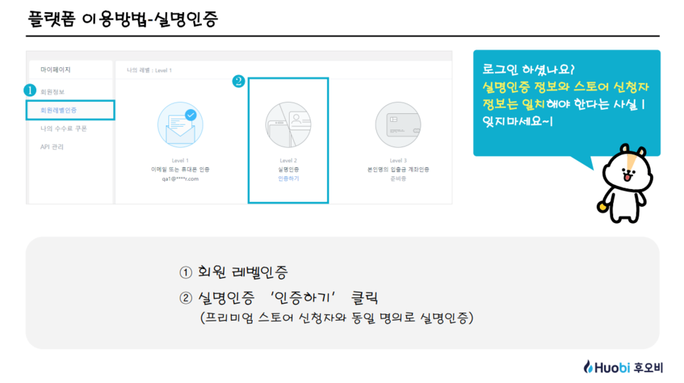 후오비코리아 C2C프리미엄마켓은 본인에 대한 인증이 필수에요~