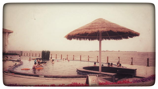 There is a hot spring on the island (the distance from the moon to the left) is about the same as a large swimming pool. The water is 1.2 meters high. It is a real underground hot spring and needs to buy tickets. When I go, I take a bath towel and take off my shoes at the residence. The hot springs are not available. The hot spring pool is built by the sea, and I feel very good when I look at the sea while taking a hot spring.