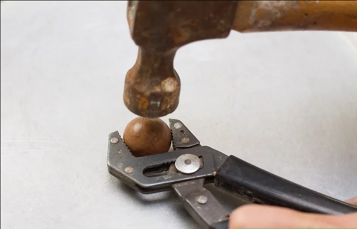 Hãy chắc rằng bạn đã kẹp chặt hạt mắc ca để nó không văng lung tung khắp nhà khi dùng búa đập
