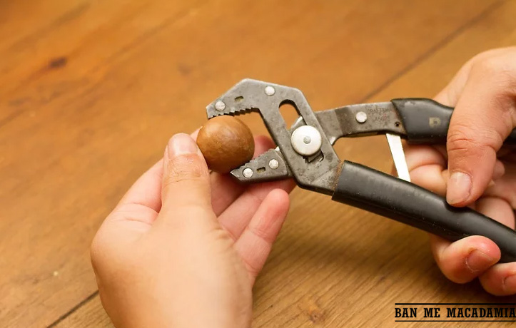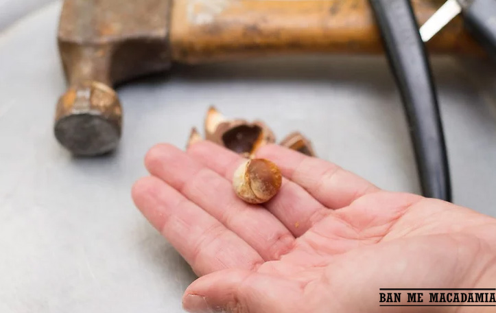 Cố gắng đập vuông góc với hạt mắc ca để vỏ dễ dàng bị nứt.
