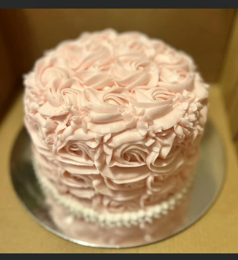 Who can make me a small birthday cake that wont chargea fortune. I want a round 2 layer yellow cake covered in purple and black flowers like the o e in this picture. Need it for september