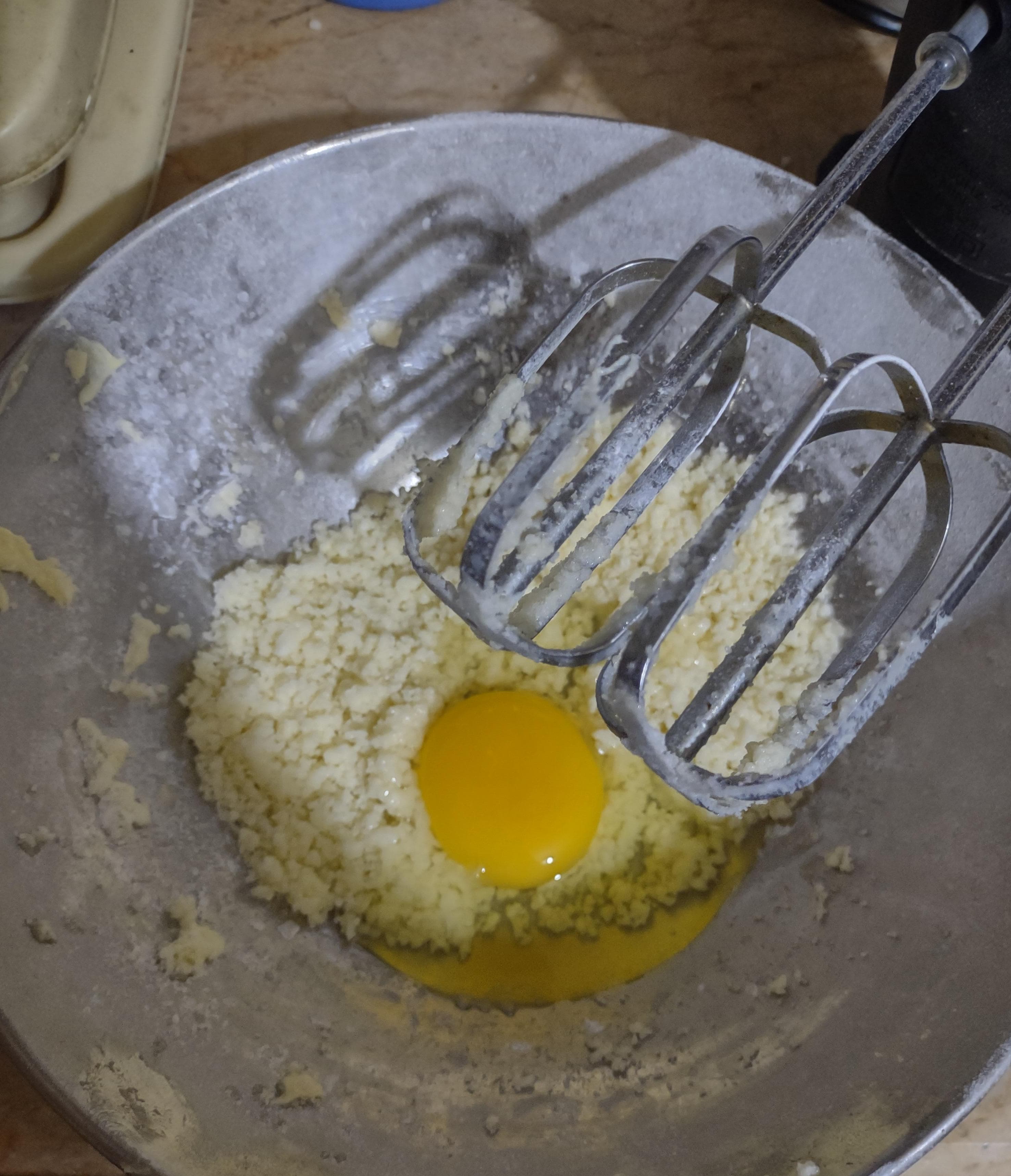 First, I took 100 grams of butter in a bowl and added 100 grams of ground sugar to it. I then beat them with the help of a beater really well until the texture was nice and creamy. After that, I added eggs one by one to the mixture. Once the eggs were in, I gave everything a good mix with the beater to make sure all the ingredients were well combined.