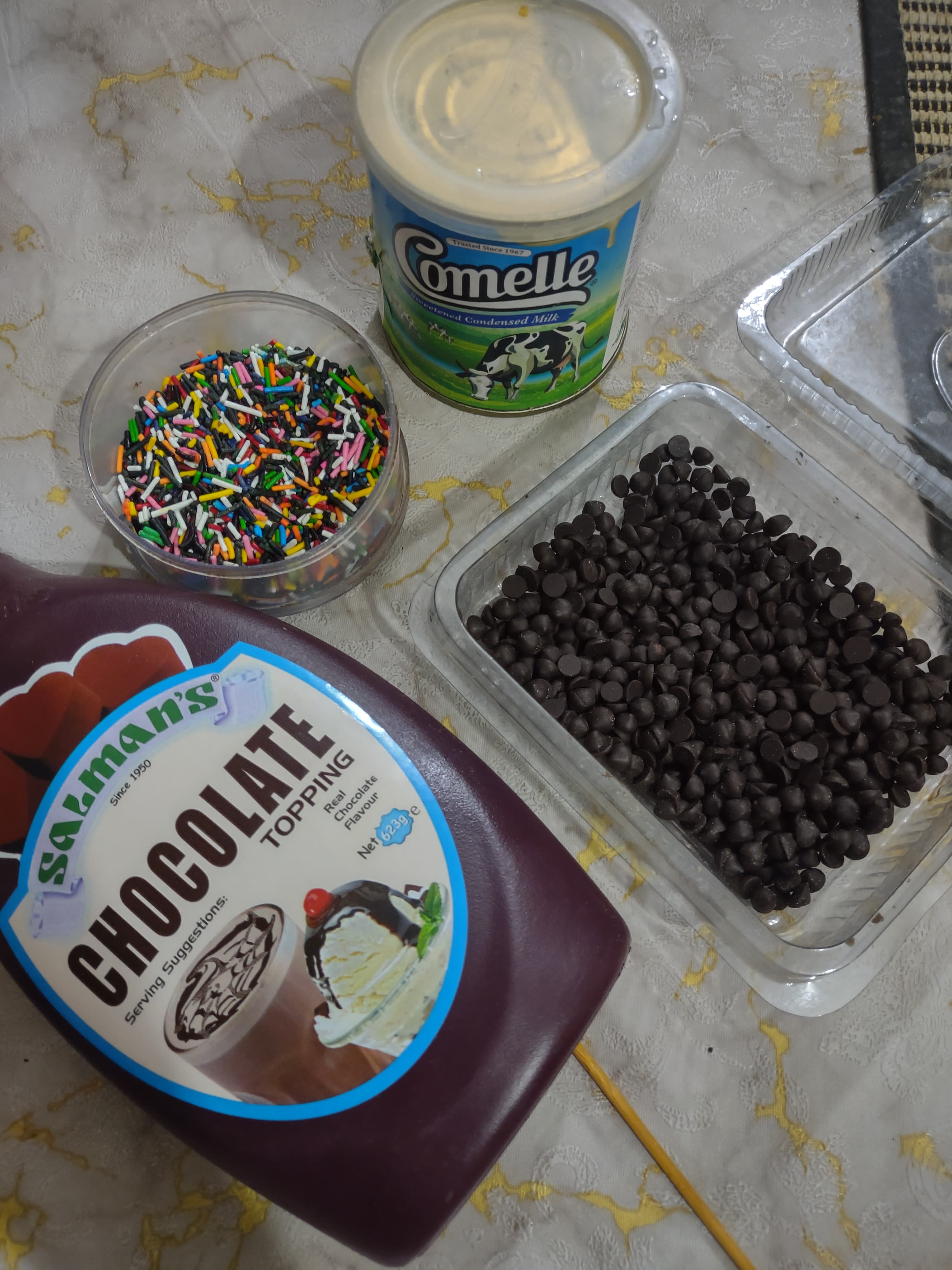 I used the following ingredients to decorate my cake. I cut it into the shape of brownies and decorate it with the available material.